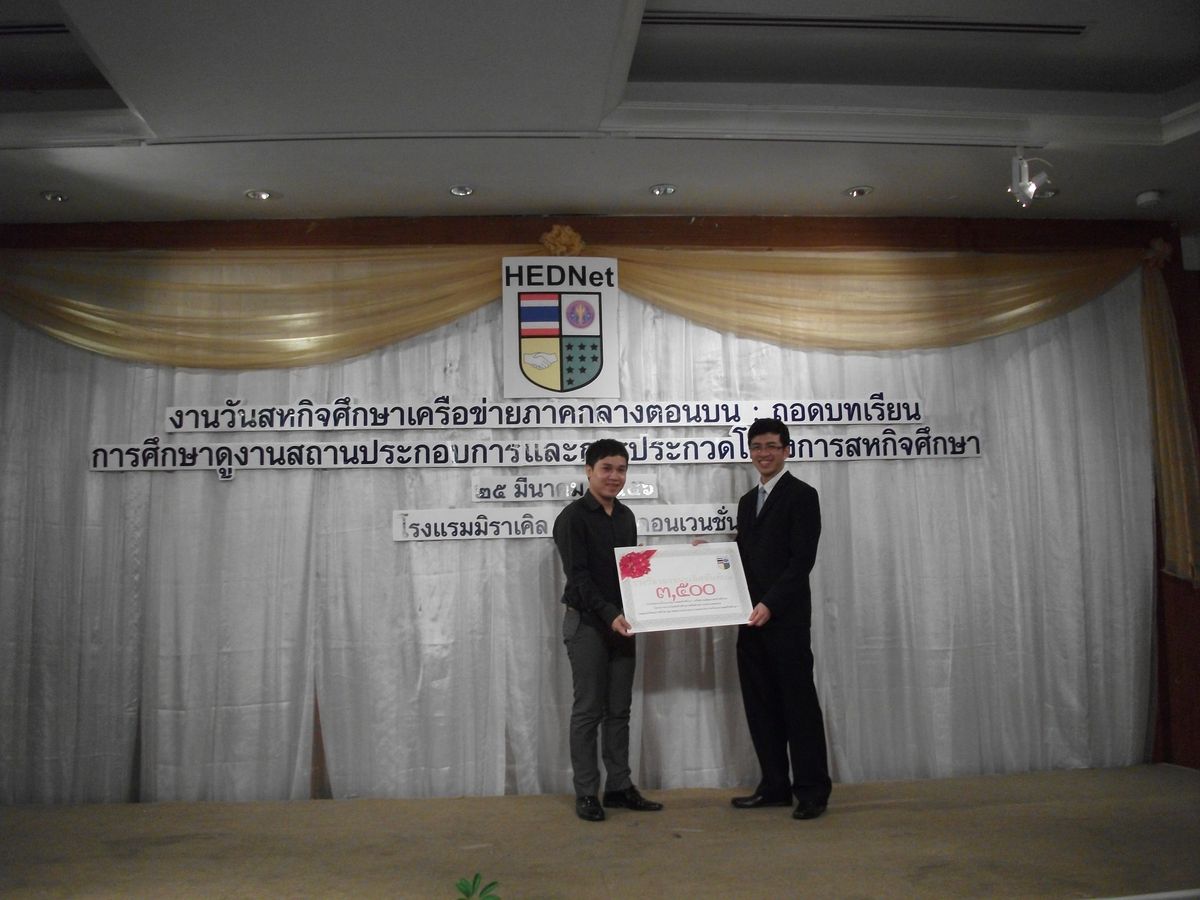 ขอแสดงความยินดีกับนักศึกษาที่ได้รับรางวัลจากการประกวดผลงานสหกิจศึกษา ดีเด่น ระดับเครือข่าย พ.ศ. 2557 เครือข่ายพัฒนาสหกิจศึกษาภาคกลางตอนบน