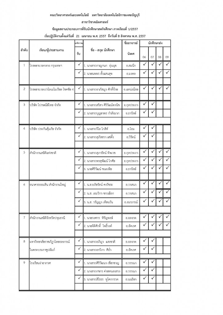 ขอให้นักศึกษารีบส่งเอกสาร สก06- 09 ด่วน เพื่อทางงานสหกิจศึกษาจะได้สรุปยอดจำนวนในการส่งให้กับอาจารย์นิเทศ