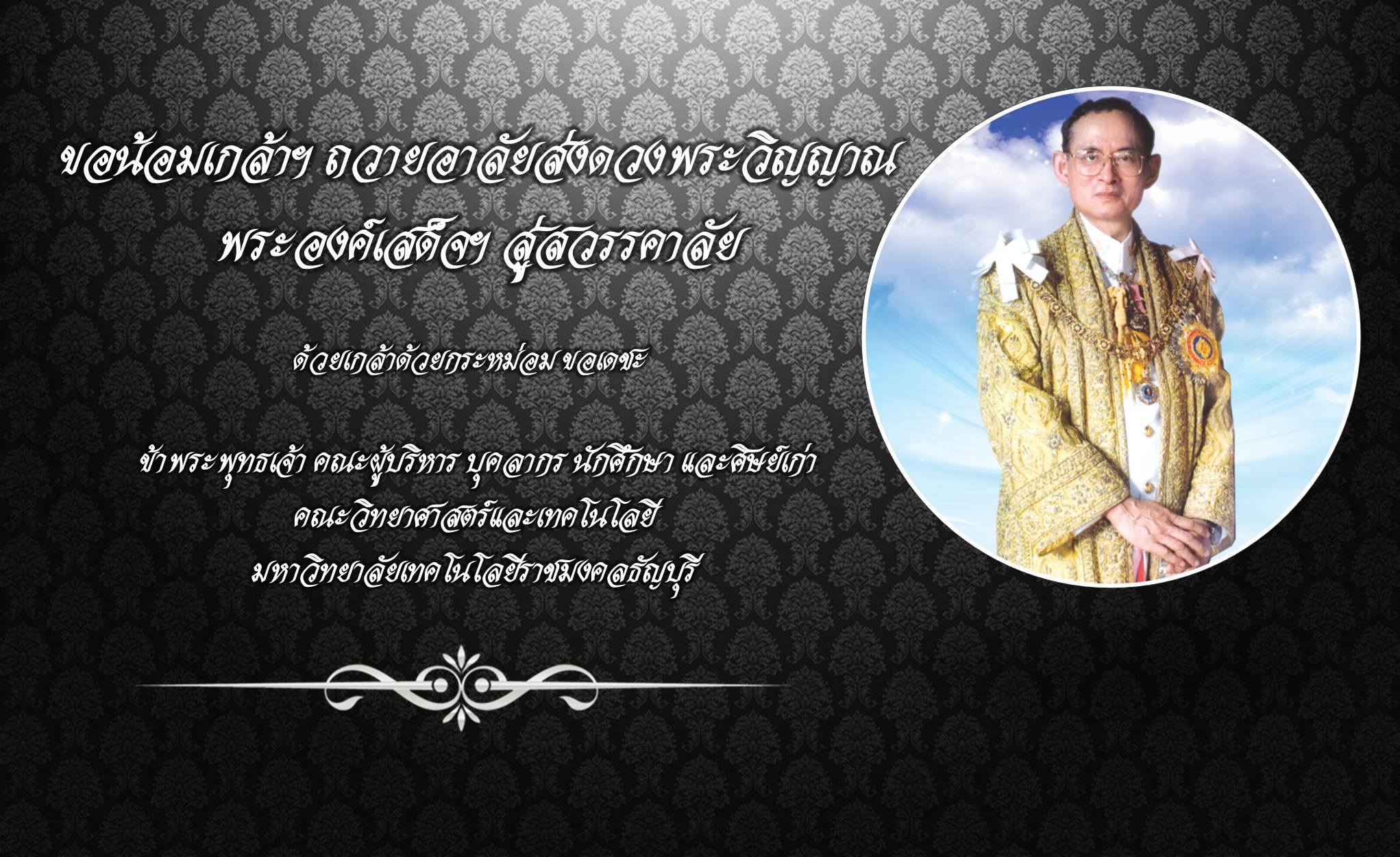 ขอน้อมเกล้าฯ ถวายอาลัยส่งดวงพระวิญญาณ พระองค์เสด็จฯ สู่สวรรคาลัย ด้วยเกล้าด้วยกระหม่อม ขอเดชะ พฤศจิกายน 14, 2016 | งานสหกิจศึกษา