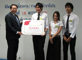 ภาพกิจกรรมการประกวดแข่งขัน โครงงาน/ผลงาน/งานประจำสหกิจศึกษา ในงานวันสถาปนามหาวิทยาลัยเทคโนโลยีราชมงคลธัญบุรี ประจำปี 2556 เมื่อวันที่ 18 มกราคม 2556 ณ ห้องเฟื่องฟ้า ชั้น 3 และห้องเรียนชั้น 4 อาคารเฉลิมพระเกียรติ 80 พรรษา 5 ธันวาคม 2550 คณะวิศวกรรมศาสตร์์ >> gallery ภาพกิจกรรม << โดยคณะวิทยาศาสตร์และเทคโนโลยีได้รับรางวัลจากการจัดประกวดแข่งขันโครงงาน/งานสหกิจศึกษาดีเด่นของนักศึกษาสหกิจศึกษามทร.ธัญบุรี ดังนี้ รางวัลชนะเลิศ ประเภทวิทยาศาสตร์และเทคโนโลยี ชื่อโครงงาน : การเปรียบเทียบความเข้มข้นของสูตรอาหารสาหรับการเพาะเลี้ยงสาหร่ายขนาดเล็กเพื่อการผลิตไขมัน ชื่อสถานประกอบการ : ห้องปฏิบัติการวิจัยสาหร่ายประยุกต์ คณะวิทยาศาสตร์ มหาวิทยาลัยเชียงใหม่ ชื่อนักศึกษา : นายณัฐวุฒิ หวังสมนึก, น.ส.รวีพร รุพันธ์, นายสิทธากร กันโอภาส สังกัด : สาขาวิชาชีววิทยา รางวัลชนะเลิศ ประเภทนานาชาติ ชื่อโครงงาน : ควบคุมระบบเน็ตเวิร์คและศึกษาระบบค้าปลีก ชื่อสถานประกอบการ : Shanghai Lotus Supermarket Chain Store Co.,Ltd. ประเทศจีน ชื่อนักศึกษา : นายธนาดล อุดมศิลป์ สังกัด : ภาควิชาคณิตศาสตร์และวิทยาคอมพิวเตอร์ สาขาวิชาวิทยาการคอมพิวเตอร์ และโครงงานอื่นๆที่เข้าร่วมการประกวด ได้แก่ ประเภทสังคมศา่สตร์ มนุษย์ศาสตร์ และการจัดการ 1. ชื่อโครงงาน : ปัจจัยที่มีผลต่อการตัดสินใจยอมรับการปลูกไม้โตเร็วเพื่อเป็นเชื้อเพลิงในการผลิตไฟฟ้า ชื่อสถานประกอบการ : สถาบันค้นคว้าและพัฒนาผลิตผลทางการเกษตรและอุตสาหกรรมการเกษตร ชื่อนักศึกษา : น.ส.วริษา ชูจิต สังกัด : สาขาวิชาสถิติประยุกต์ 2. ชื่อโครงงาน : โครงงานวิจัยเชิงสารวจ “การเมืองไทยในสายตาเยาวชนแห่งชาติ” ชื่อสถานประกอบการ : สวนดุสิต โพล ชื่อนักศึกษา : นายกิตติศักดิ์ กิจบารุง, น.ส.เวโรนิกา ศรีมณี สังกัด : สาขาวิชาสถิติประยุกต์ ประเภทวิทยาศาสตร์และเทคโนโลยี ชื่อโครงงาน : การหาวัตถุดิบเพื่อใช้ทดแทนดินแดง ชื่อสถานประกอบการ : บริษัท ภูมิใจไทยซีเมนต์ จากัด ชื่อนักศึกษา : น.ส.รุ่งทิวา วิหครัตน์ สังกัด : ภาควิชาเคมี