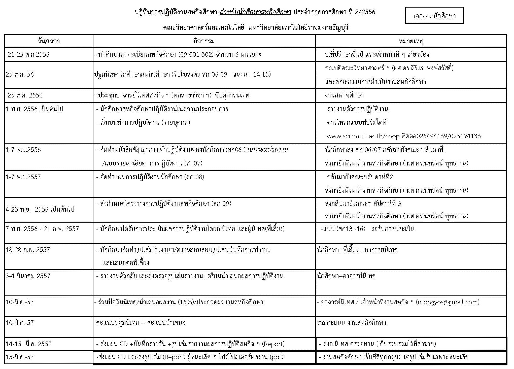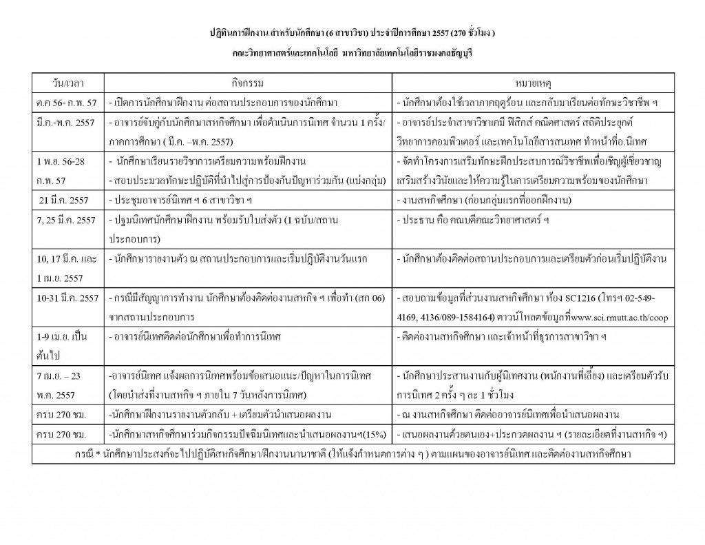 ปฏิทินการฝึกงาน สำหรับนักศึกษา (6 สาขาวิชา) ประจำปีการศึกษา 2557 (270 ชั่วโมง ) เมษายน 2, 2014 | งานสหกิจศึกษา